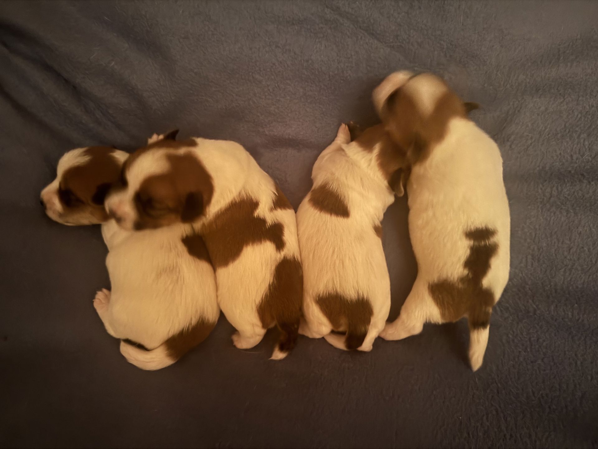 hat am 9.9.2025 4 wunderschöne Welpen, rot-weiss, glatt, rauh, broken bekommen
