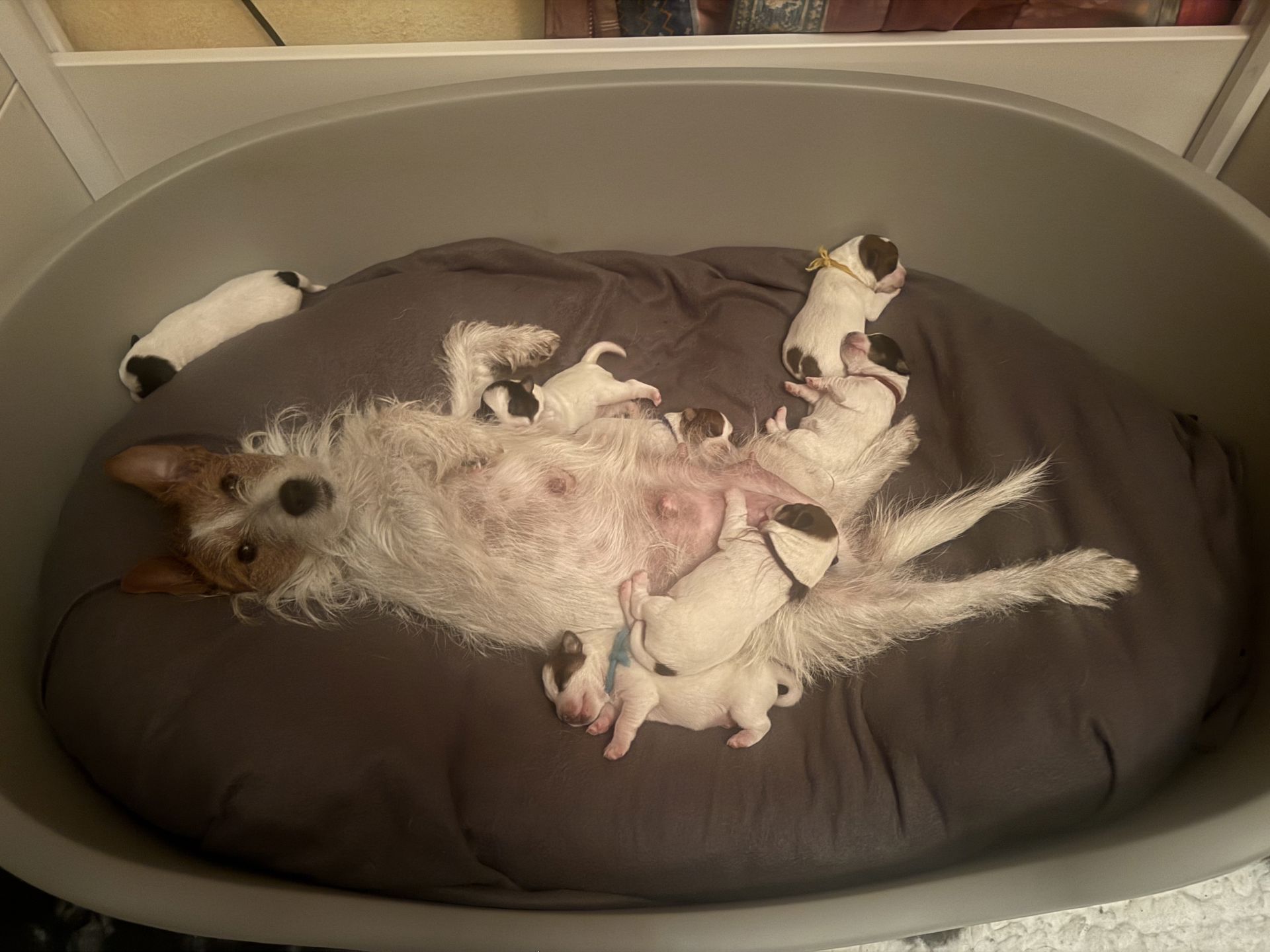 Pepita (Dolly Everest first) hat am Weihnachtstag 7 gesunden Welpen das Leben geschenkt